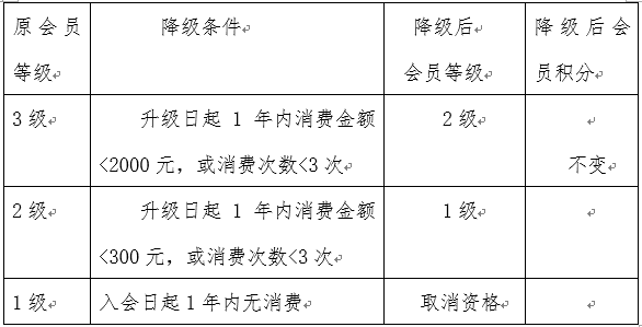2.会员的降级标准(会员降级标准从2017年1月1日实施)